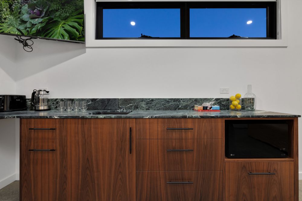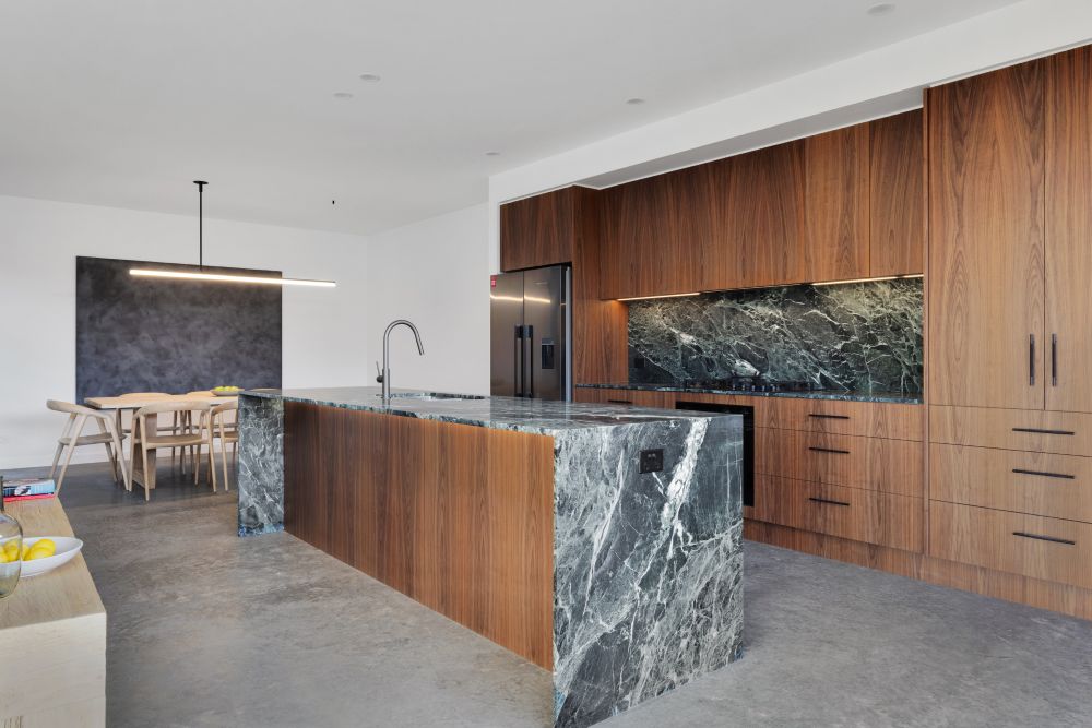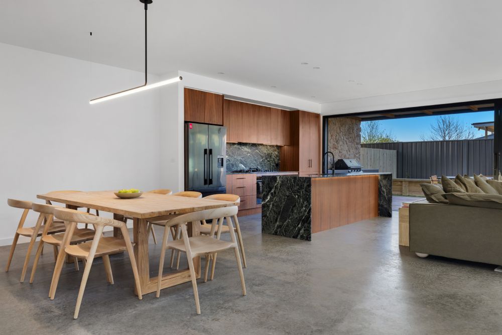 The house was designed with entertaining in mind, with the indoor/outdoor separated by a large stacking door that split the kitchen and outdoor barbecue and entertaining area. Our client, Franziska, was incredibly communicative and welcomed the suggestions that we offered to further enhance the space.