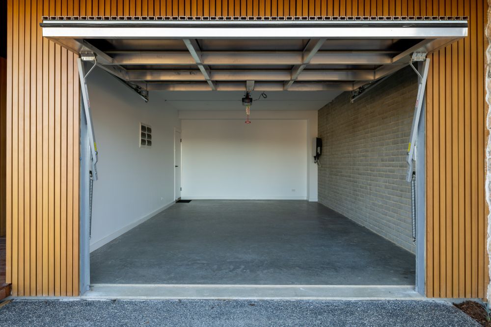 - Single garage with a concealed flush mount tilt garage door